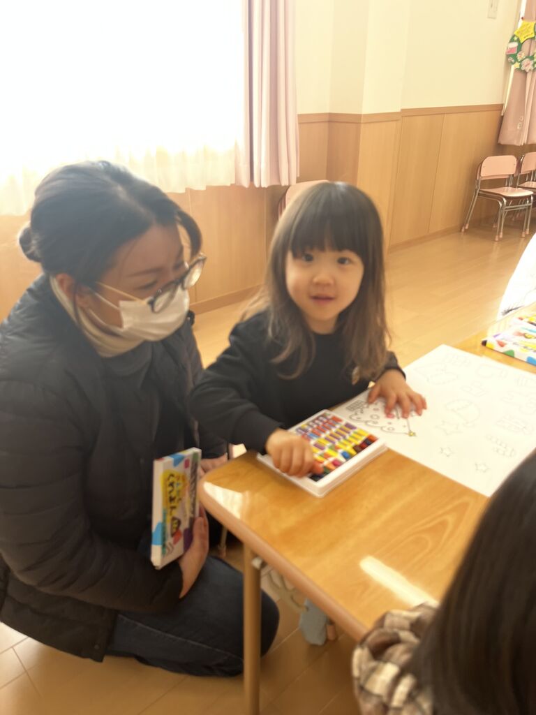 そして、クレヨンでぬりえをしたら はさみでちょきちょき✂️