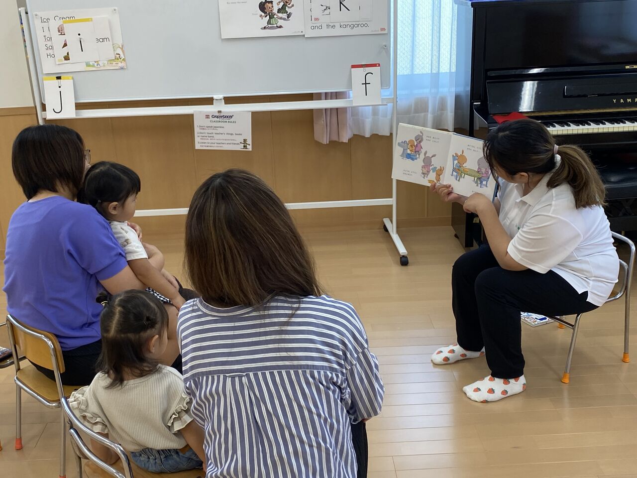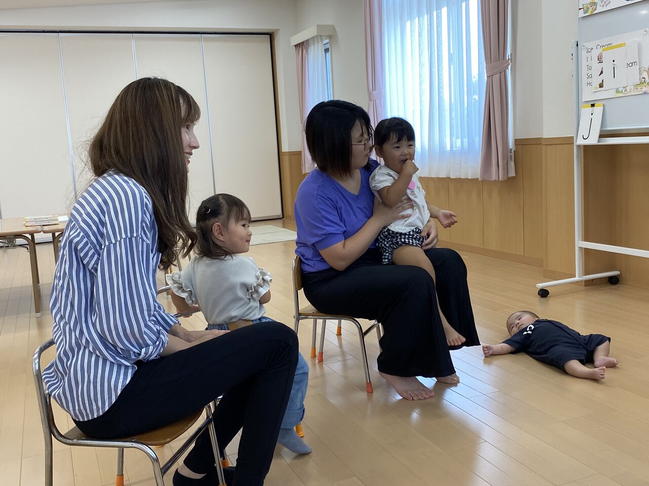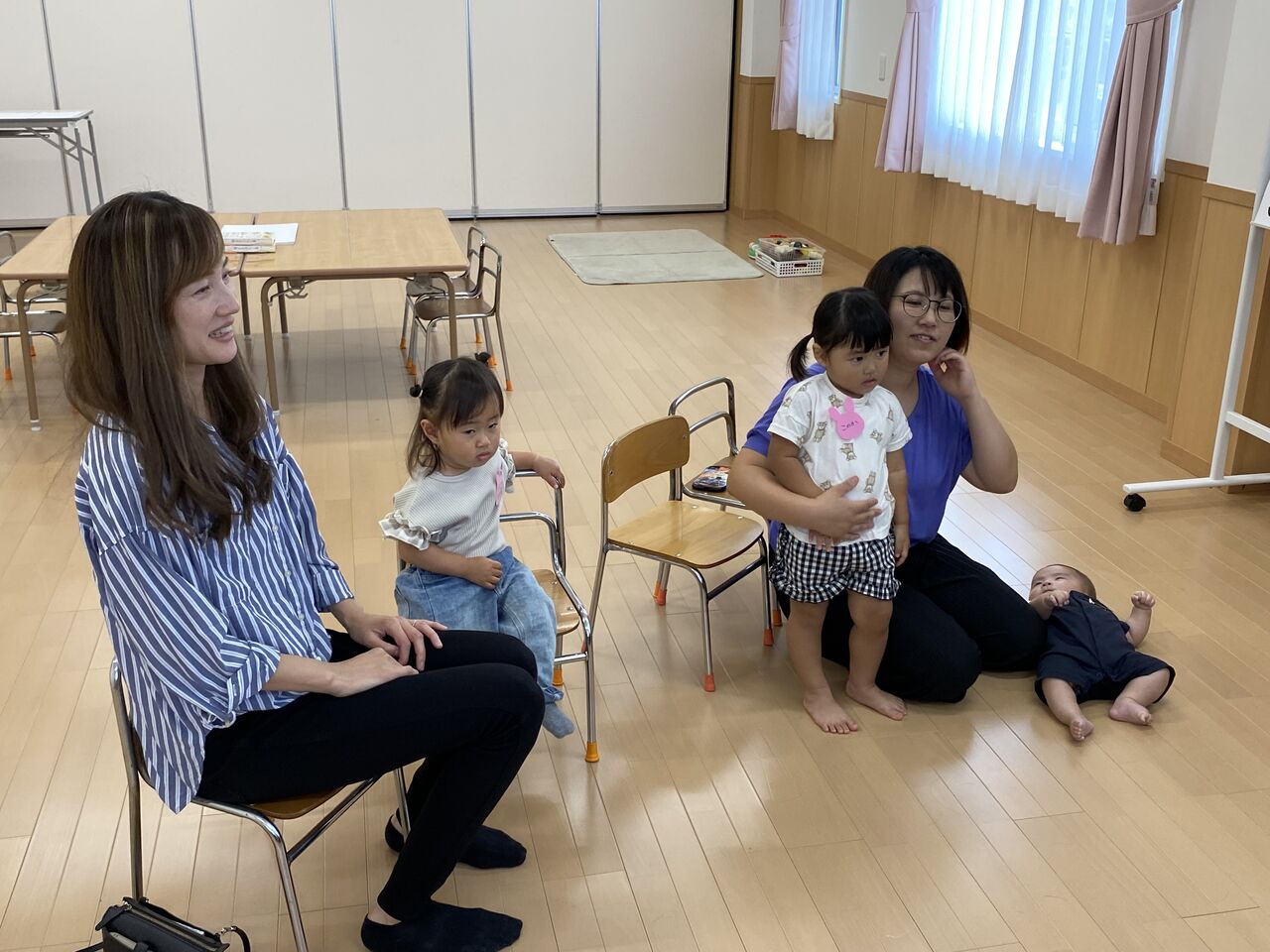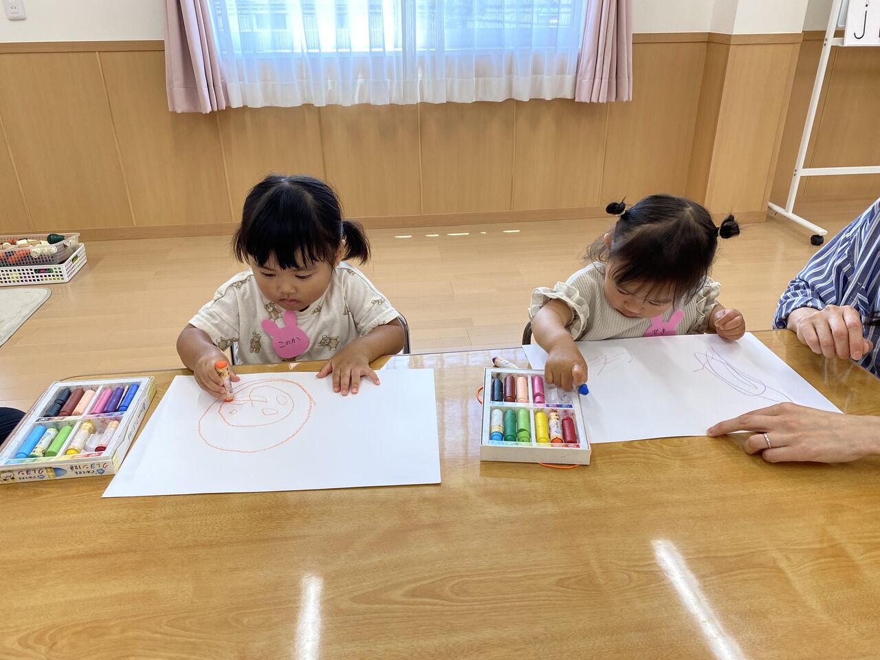 R6 親子ふれあい教室☆おえかきあそび☆ 今日は、今年度最初の親子ふれあい教室でした🎶 2組の方が参加してくれました✨ 「おはようのうた」を歌って・・・🎶 今日は「とんとんとんとん アンパンマン」の手遊びをやりました🎶 まねっこ上手にできたね!! 「だいすきぎゅっ」「どんないろがすき」の絵本を読みました♡ さあ、今日はおえかきしてみよう〜!! ままとおばけかいてみたよ👻 おもちゃでもあそんだよ。 お片付けがとってもじょうずな二人でした✨ ぼくもごろーん🎶 色んな色を使ってとってもかわいくお絵描きできました✨ 次回は5月22日(水)を予定しております😊 たくさんのご参加お待ちしております 関連