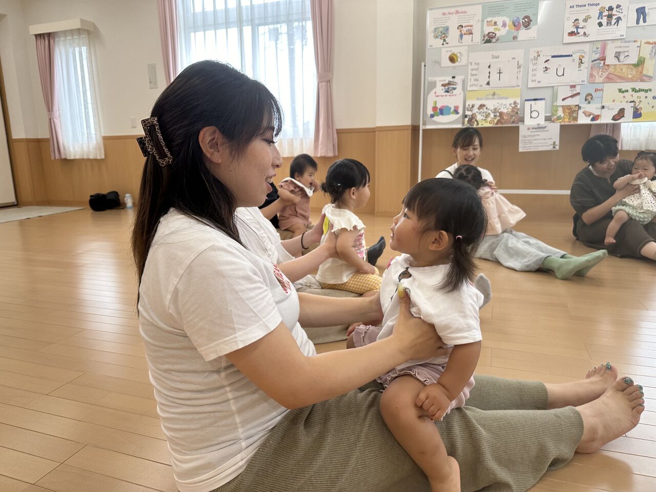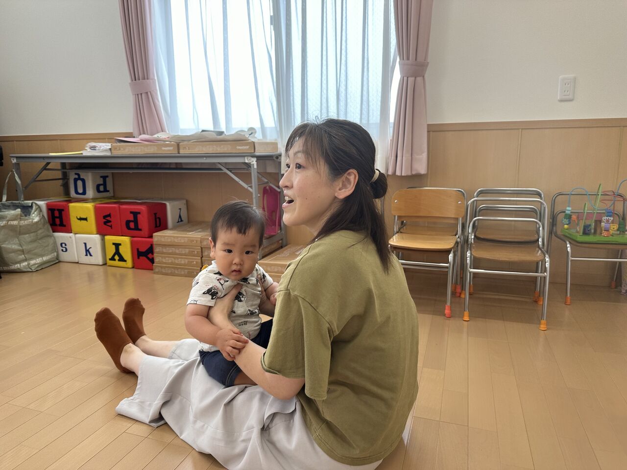 ママのおひざの上に乗ってリズム遊び🎵🎵